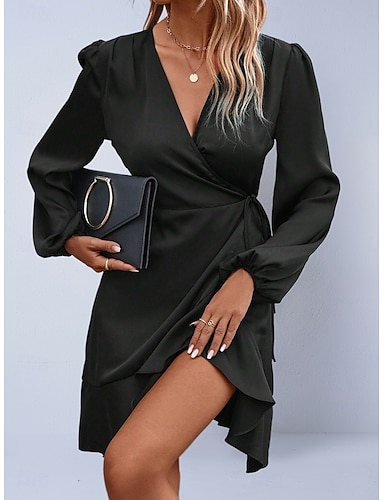 Dámské Mini šaty Saténové šaty Šaty na párty Zavazovací šaty Elegantní Módní Moderní Venkovní Dovolená Párty Běžný Bez vzoru Dlouhý rukáv Do V Černá Světlá růžová Námořnická modř Tmavě zelená Léto