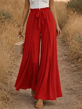 Dámské Imitace bavlny a lnu Široké nohavice Kalhoty Kalhoty pro volný čas prázdniny Módní Šik ven Plná délka Vysoký pas Bez vzoru Šňůrky Elastický pas Pohodlné Neelastické Denní Dovolená ulice