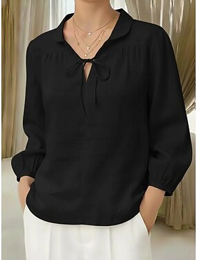 Dámská blůza z lnu jako faux bavlněný lněný s krajkovým zapínáním jednobarevná elegantní stylová základní dlouhý rukáv límec pravidelné topy každodenní modrá černá bílá růžová červená léto jaro podzim
