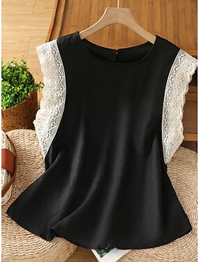 Dámské Halenka Bavlněná košile Košile bez rukávů Krajka Bez vzoru stylové Klasické Moderní Bez rukávů Tričkový Běžné topy Denní Dovolená Jdeme ven Černá Žlutá Léto Jaro