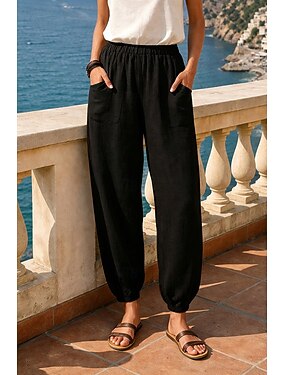 Dámské Bavlněné prádlo Letní kalhoty prázdniny Šik ven Základní Plná délka Středně vysoký pas Bez vzoru Kapsy Elastický pas Pohodlný Pohodlné Neelastické Denní Venkovní ulice rýžově bílá Černá Tmav