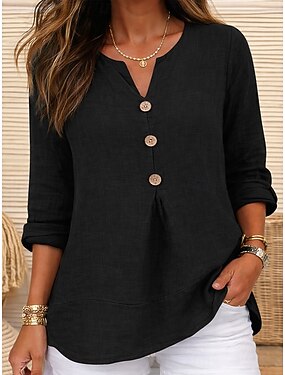 Dámské Bavlněné lněné košile Imitace bavlny a lnu Knoflíky Bez vzoru Denní Moderní 3/4 délka rukávu Košilový límec Běžné topy Denní Černá Oranžová Hnědá Khaki Šedá Léto Jaro Podzim