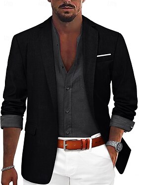 Pánské Plátěný sako Sportovní kabát Zářezový límec Módní Na běžné nošení Jednobarevné Plátěný sako Černá Standardní uložení Jednořadé s jedním knoflíkem