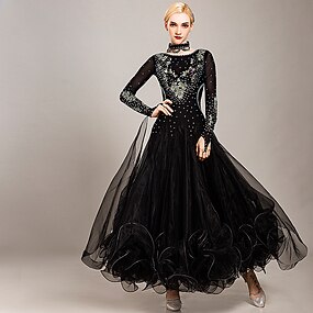 Standardní tance Šaty Štras Dámské Výkon Trénink Dlouhý rukáv Vysoký Šifón Čínský nylon Tyl