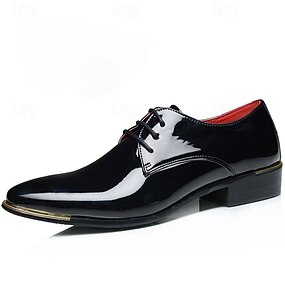 Pánské černé lakované oxfordky se šněrováním, formální boty, lesklé, obchodní, svatební, pro ženicha, kancelář, bankety, večírky, večerní akce a elegantní gentlemanský styl.