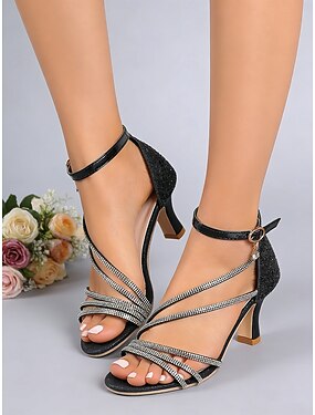 Dámské černé páskové sandály na jehlovém podpatku, otevřená špička s páskem přes kotník, elegantní společenské boty na koktejlové večírky a večerní příležitosti &formální příležitosti