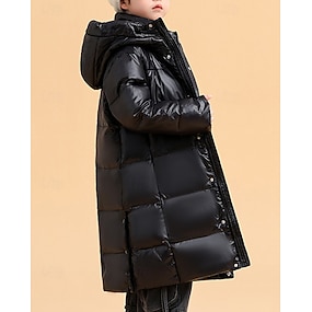 Děti Unisex Péřová bunda Venkovní bunda Puffer Jacket Svrchní oděvy Pevná barva Dlouhý rukáv Zahřívací Větruodolné Kabát Venkovní Denní Základní Černá Rubínově červená Trávová zelená Podzim Zima 4