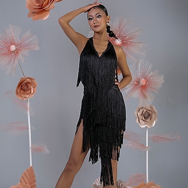 latinské tance exotické taneční oblečení latinské salsa taneční šaty s třásněmi střapec dámské představení denní nošení bez rukávů chinlon