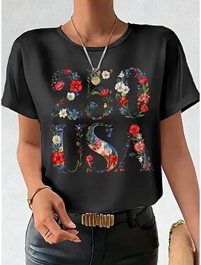 Americký den nezávislosti Dámské Tričko Tisk Květinový Grafika Vlajka stylové Klasické Na běžné nošení Krátký rukáv Tričkový Kulatý Běžné topy Denní Vodní modrá Černá Bílá Rubínově červená Šedá Léto