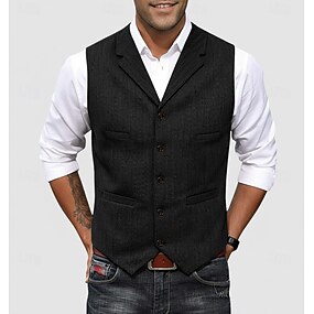 Pánské Tvídová vesta Vesta Formální Svatební Dovolená Ležérní Vinobraní Módní Jaro Podzim Kapsy Knoflíky Polyester Tvíd Pohodlné Bez vzoru Smrčkový steh Jednořadé Do V Stažený Běžný Stříbrná Čern