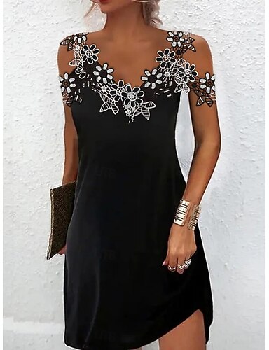 Dámské Krátké mini šaty Krajkové šaty Bílé šaty Elegantní Plážové Dovolená Běžný Květinový Bez rukávů Tričkový Vodní modrá Černá Bílá Světlá růžová Léto Jaro