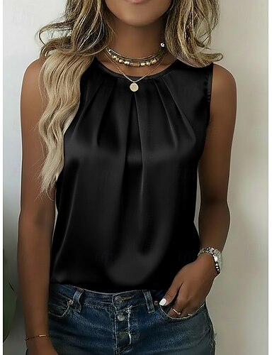 Dámské Satén Tričko Tričko Top Nabírané šaty Bez vzoru Elegantní Módní stylové Bez rukávů Tričkový Běžné topy Ležérní Denní Jdeme ven Vodní modrá Černá Bílá Meruňková Béžová Léto Jaro