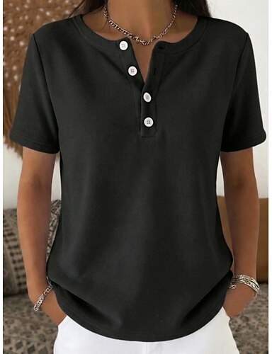 Dámské Tričko Tričko Top Knoflíky na hrudi Bez vzoru Módní stylové Klasické Krátký rukáv Henley Běžné topy Denní Jdeme ven Víkend Vodní modrá Černá Bílá Rubínově červená Námořnická modř Léto Jaro