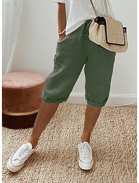 Dámské Capri kalhoty Mieszanka bawełny Imitace bavlny a lnu Letní šortky Délka kolen Pevná barva Tmavě zelená Meruňková Khaki Léto