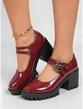 Dámské vínové boty na platformě Mary Jane s přezkou a robustní podrážkou, ležérní a elegantní styl na zimu, Vánoce a každodenní nošení
