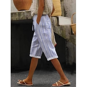 Dámské Bavlna Capri kalhoty Mieszanka bawełny Imitace bavlny a lnu prázdniny Módní Šik ven Délka kolen Vysoký pas Proužky Šňůrky Kapsy Elastický pas Prodyšnost Pohodlné Neelastické Denní Dovolen