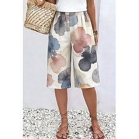 Dámské Kalhoty chinos Kraťasy prázdniny Etnický styl Základní Telecí délka Vysoký pas Grafika Geometrické tvary Elastický pas Pohodlné Neelastické Denní Dovolená Formální Bílá Hnědá Khaki Béžová Léto