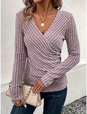 Dámské Halenka Pevná barva Elegantní stylové Základní Dlouhý rukáv Do V Běžné topy Denní Vodní modrá Černá Armádní zelená Fialová Jaro Podzim Zima
