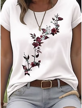 Dámské Tričko Tisk Květinový Grafika stylové Klasické Na běžné nošení Krátký rukáv Tričkový Kulatý Běžné topy Denní Vodní modrá Bílá Světlá růžová Šedá Léto Jaro