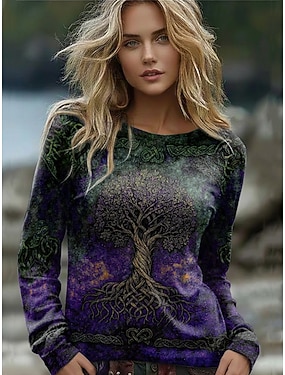 dámské boho vintage Viking tričko grafika móda stylové dlouhý rukáv kulatý výstřih běžné topy denní víkendový potisk červená modrá fialová zelená léto jaro podzim