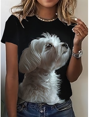 Dámské Tričko Tisk Grafika Zvíře Vinobraní stylové Klasické Krátký rukáv Tričkový Kulatý Běžné topy Denní Víkend Černá Bílá Trávová zelená Léto Jaro Podzim