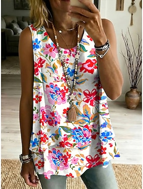 Dámské Bez rukávů Slátanina Vícevrstvé Tisk Květinový Grafika Elegantní Na běžné nošení Bez rukávů Do V Běžné topy Ležérní Denní Vodní modrá Rubínově červená Fialová Oranžová Léto Jaro