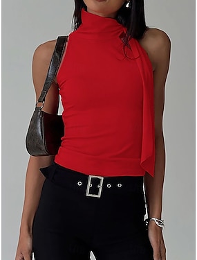 Dámské Tričko Bez rukávů Tričko Top Nabírané šaty Slátanina Pevná barva Módní Klasické Na běžné nošení Bez rukávů Stojáček Crop Tops Denní Jdeme ven Víkend Černá Světlá růžová Rubínově červená Béžová