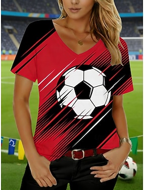 Dámské Tričko Tričko Top Tisk Grafika Fotbal stylové Klasické Na běžné nošení Krátký rukáv Do V Běžné topy Denní Sport Jdeme ven Bílá Rubínově červená Oranžová Léto Jaro