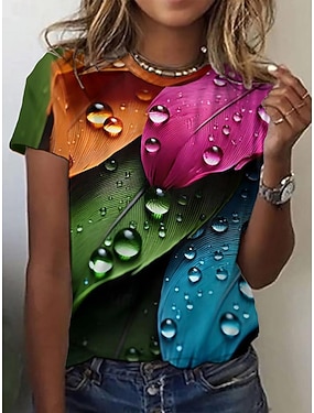 Dámské Tričko Tisk Květinový Grafika Zářící barvy stylové Klasické Na běžné nošení Krátký rukáv Tričkový Kulatý Dlouhé topy Ležérní Denní Vodní modrá Oranžová Léto Jaro Podzim