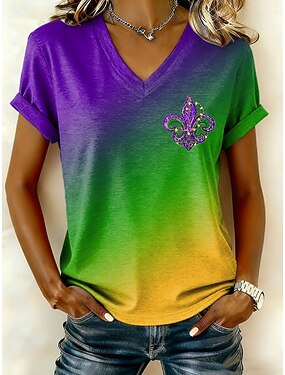 Karneval Mardi Gras Dámské Tričko Tisk Grafika Zářící barvy Abstraktní Vinobraní stylové Klasické Krátký rukáv Do V Běžné topy Denní Fialová Léto Jaro