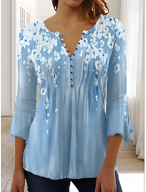 Dámské Halenka Květinový Grafika Vinobraní stylové Klasické 3/4 délka rukávu Do V Běžné topy Denní Vodní modrá Světlá růžová Fialová Léto Jaro