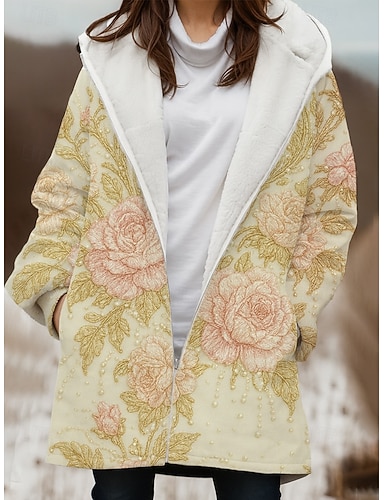 Dámské Zimní kabát Zimní bunda Větruvzdorné Zahřívací Zip Kapsy Podšité fleecem Na běžné nošení Květinový Venkovní Dovolená Domů Ležérní Dlouhé Kapuce Běžný Dlouhý rukáv Svrchní oděvy Světle modr