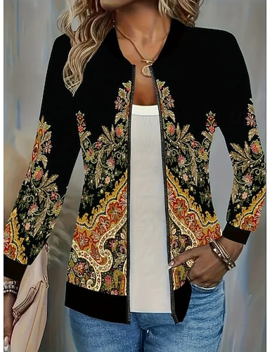 Dámské Neformální bunda Zahřívací Rychleschnoucí Zip Kapsy Elegantní Módní Denní Jednoduchý Květinový Dovolená Ležérní Denní Běžné / Denní Standardní baseballový obojek Běžný Dlouhý rukáv Svrchn