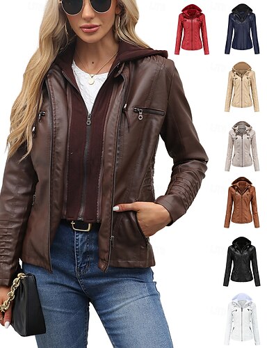 Dámské Deri Ceketler Pohodlné Kapsy Celý zip Módní Pouliční styl Bez vzoru Venkovní Běžné / Denní Standardní Kapuce Běžný Dlouhý rukáv Svrchní oděvy Černá Bílá Rubínově červená Jaro Podzim