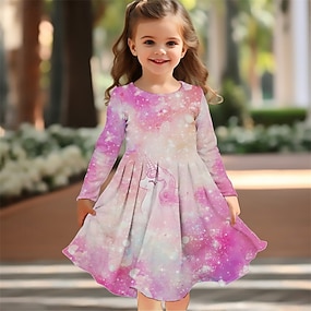 Girls ' 3D Grafika Šaty Dlouhý rukáv Léto Jaro Dovolená Denní Princeznovské Krásná Sladký Děti 4-12 let Volnočasové šaty Áčkové šaty Délka ke kolenům Běžný
