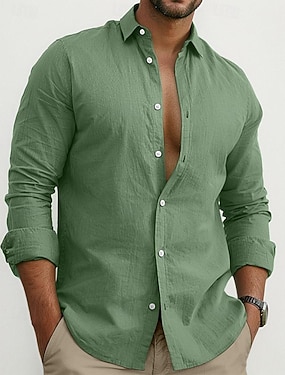 Pánské Košile plátěná košile Letní košile Plážová košile Pevná barva Venkovní Dovolená Černá Trávová zelená Khaki Šedá Dlouhý rukáv Přehnutý Jaro & podzim Oblečení Tlačítko dolů