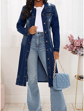 Dámské Košile Bunda Neformální bunda Kot Ceketler Pohodlné Prodyšné Kapsy Módní Na běžné nošení Bez vzoru Dovolená ulice Ležérní Denní nošení Jednořadé Dlouhé Přehnutý Běžný Dlouhý rukáv Svrchní oděvy
