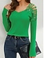 Dámské Košile Elegantní Satén Saténová košile Pevná barva stylové Na běžné nošení Dlouhý rukáv studené rameno Běžné topy Denní Jdeme ven Asymetrický Černá Světlá růžová Vodní modrá Trávová zelen
