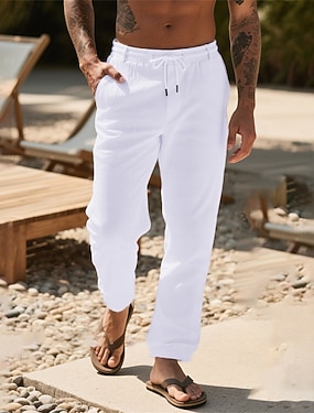 Pánské Plátěné kalhoty Kalhoty Letní kalhoty Volné kalhoty Plážové kalhoty Elastický pas Šňůrky Straight-Leg Bez vzoru Pohodlné Prodyšné Plná délka Venkovní Dovolená Plážové prázdniny Módní Bíl