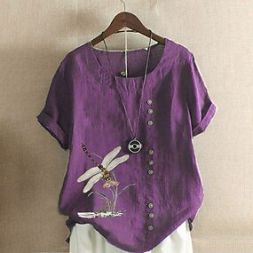 Ženská košile 100% bavlněná košile blůza tisk knoflíky víkend streetwear základní neformální lněný jako krátký rukáv kulatý výstřih bílá léto jaro