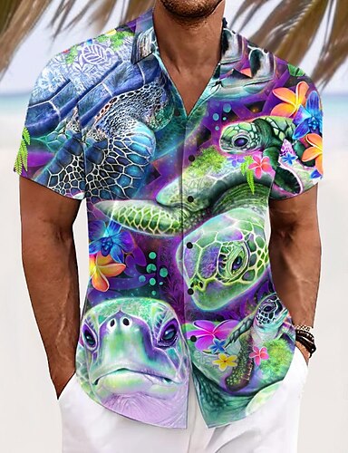 Pánské Tropický vzhled Želva mořský život Košile Havajská košile Aloha košile Krátký rukáv Košile Kubánský límec prázdniny Havajské Resort styl Venkovní Dovolená Havajské Modrá Fialová Trávová zelená