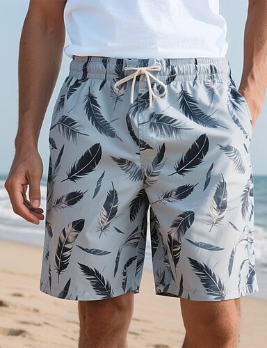 Pánské Kraťasy Plážové šortky Šňůrky Peří Prodyšné Rychleschnoucí Délka kolen Venkovní Dovolená Párty prázdniny Havajské Dusty modrá Lehce elastické