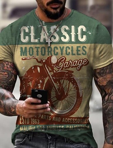 Pánské Grafika Motor Tričko Motocyklové tričko Krátký rukáv tričko 3D tisk Tričkový Košile Vinobraní Módní Designové Venkovní Denní Sport Světle žlutá Světle hnědá Tmavěhnědá Jaro léto Oblečení S M L