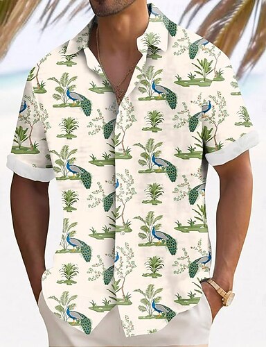 Pánské Ptáček Páv Tropické rostliny Havajská košile Košile na knoflíky Aloha košile Krátký rukáv Havajské Dovolená Oblečení na pláž Léto Jaro Přehnutý 3D tisk košile s límečkem Meruňková