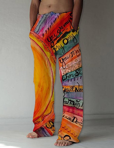 Pánské Kalhoty Letní kalhoty Plážové kalhoty Šňůrky Elastický pas 3D tisk Písmeno Grafické tisky Pohodlné Ležérní Denní Dovolená Šik ven Havajské Žlutá Světlá růžová