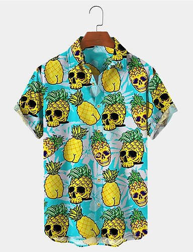 Pánské Lebky Ananas Košile Havajská košile Aloha košile Krátký rukáv Košile Přehnutý Tropický vzhled Módní Havajské Ležérní Havajské Dovolená Žlutá Světle zelená Vodní modrá S M L