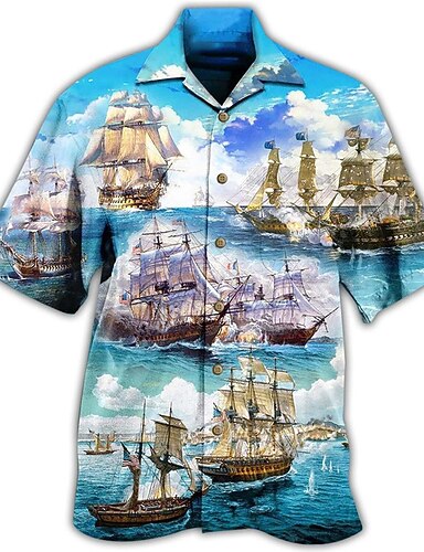 Pánské Člun Přímořská krajina vzor Košile Havajská košile Aloha košile Krátký rukáv Košile Kubánský límec Tropický vzhled Módní Šik ven Ležérní Havajské Dovolená Černá Bílá Žlutá S M L