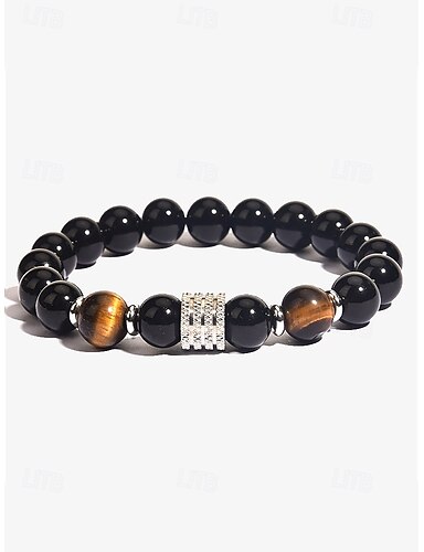 pánský korálkový náramek z přírodního kamene a nerezové oceli - tygří oko a černý onyx - stylový a odolný doplněk