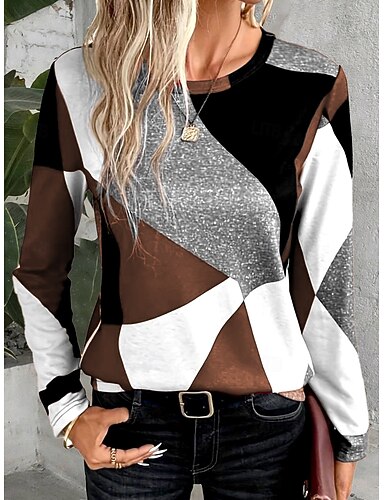 Dámské Tričko Bez vzoru Módní Moderní Na běžné nošení Dlouhý rukáv Tričkový Běžné topy Denní Víkend Knoflíky Vodní modrá Hnědá Šedá Podzim Zima