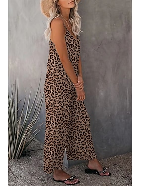 Dámské Běžný Kombinéza Šik ven Leopard Bez rukávů Do V Kapsy Tisk Denní Dovolená Běžný Světlá růžová Námořnická modř Světle hnědá Léto